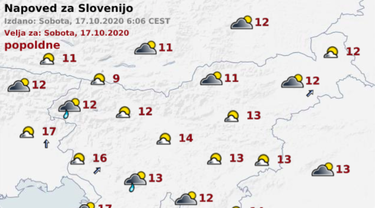 Dopoldne bo ponekod po nižinah megleno. Popoldne ali zvečer bo predvsem na Primorskem možna kakšna ploha. Najvišje dnevne temperature bodo od 9 do 14, ob morju okoli 17 stopinj Celzija.