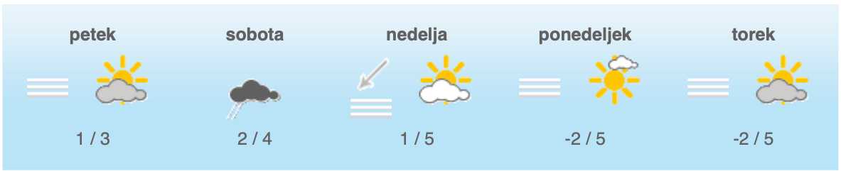 Najvišje dnevne temperature bodo od 0 do 4, na Primorskem okoli 10 stopinj Celzija.