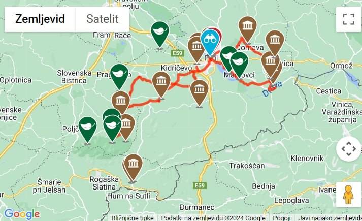 Znamenitosti, ki jih srečate na poti so Ptujski grad, izliv grajene v Dravo, Ptujska gora, Jama Belojača, Boč, grad Borl in mnoge druge.