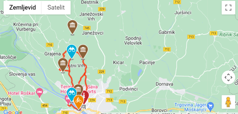 Srednje zahtevna kolesarska pot čez Mestni vrh in Slovenske gorice, je dolga 58 kilometrov.