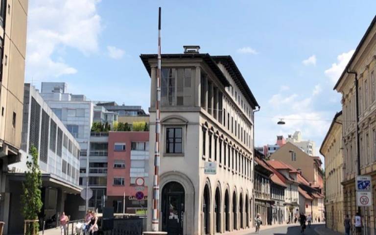 Kot študent se je naveličal iskanja sob po Ljubljani in tako je nastala ideja, kako racionalno zazidati neizkoriščeno špranjo med dvema stavbama na Slomškovi ulici 13 a, ki so jo uporabljali kot prehod na notranje dvorišče.