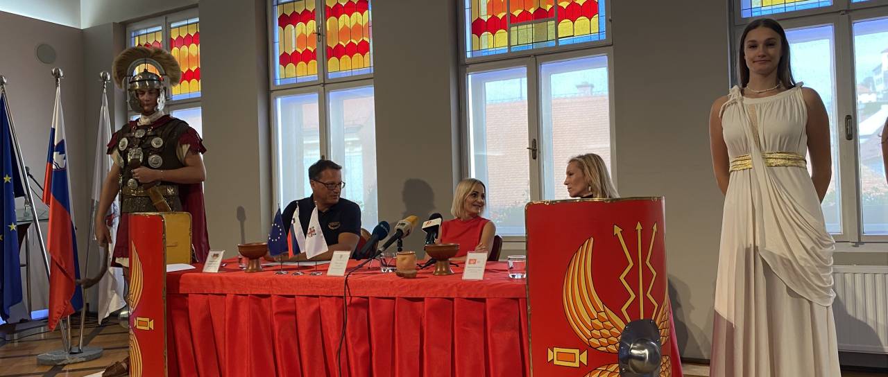 Predsednik društva Poetovio LXIX Andrej Klasinc je danes skupaj z županjo Nuško Gajšek in v. d. direktorice Javnega zavoda Ptuj Tanjo Srečkovič Bolšec predstavil okvirni program letošnjih Rimskih iger.