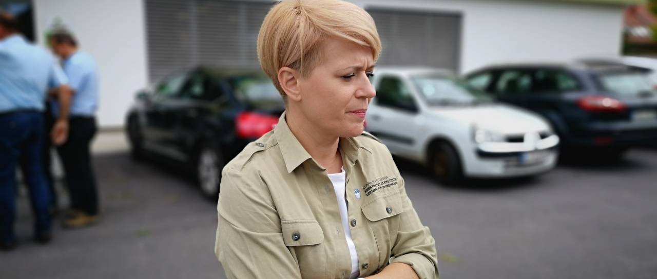 Ministrica za kmetijstvo, gozdarstvo in prehrano Aleksandra Pivec si je ogledala razdejanje, ki ga je na kmetijskih gospodarstvih na Ptuju in v okolici za seboj pustilo včerajšnje neurje.