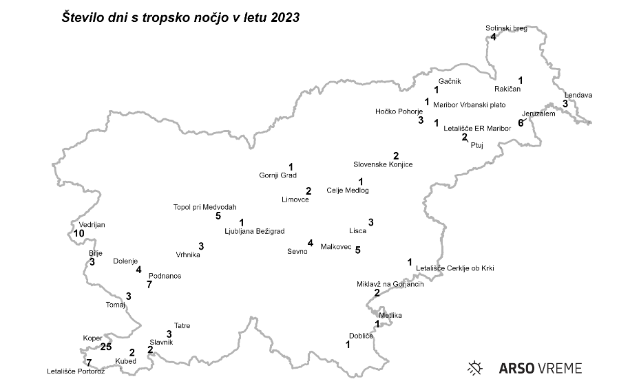 Tropskih noči v posameznem letu ni veliko. Na spletni strani Agencije za okolje lahko vidimo, da so bile v letu 2023 na območju Ptuja in Maribora v celem letu do tri tropske noči.