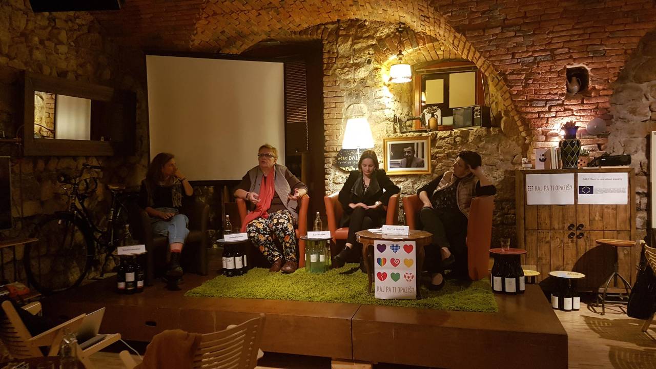 Dogodek v domu KULTure MuziKafe je potekal v okviru kampanje Kaj pa ti opaziš?, ki je del projekta DARE - Upamo si skrbeti za enakost. Tega pod okriljem programa Evropske unije za pravice, enakost in državljanstvo izvajajo Ministrstvo za delo, družino, socialne zadeve in enake možnosti, društvo Legebitra in Filozofska fakulteta Univerze v Ljubljani.