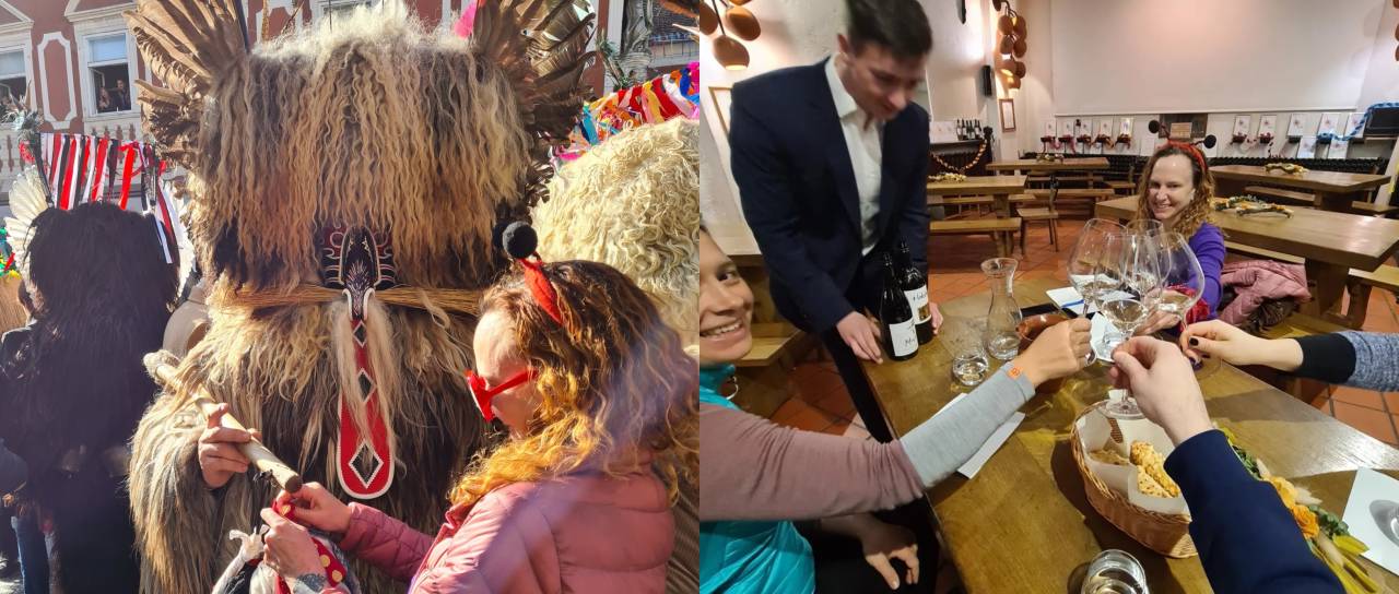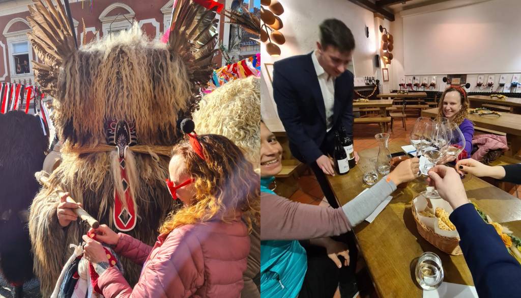 Gostilna Ribič je pred povorko novinarki pripravila okusno kulinarično razvajanje, vrhunec dneva pa je bila mednarodna karnevalska povorka, kjer so gostjo najbolj navdušili kurenti in koranti, zgodovino teh pa si je ogledala še v Kurentovi hiši.