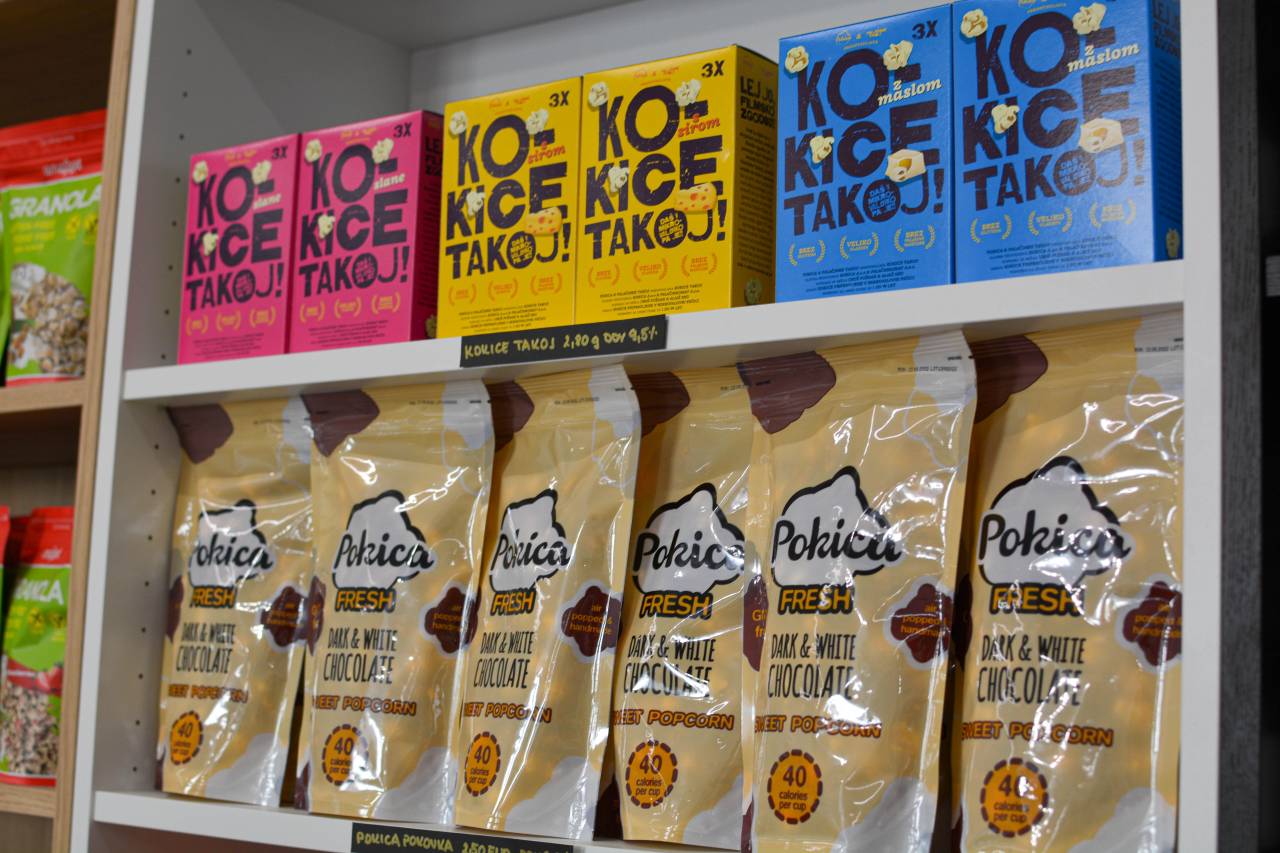 Ob novi trgovini se Špela in Uroš še naprej posvečata blagovni znamki Pokica, ki letos vstopa v peto leto svojega delovanja. Lani sta na tržišče postavila nov izdelek 'Kokice takoj', ki so namenjene za pripravo v mikrovalovno pečico.