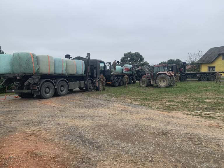 Pri prevozu pa so se zanesli tudi na vojsko, Urošu Špruku je uspelo urediti dodaten prevoz s pomočjo Slovenske vojske, ki je prišla v Bolehnečice s kar šestimi tovornjaki.