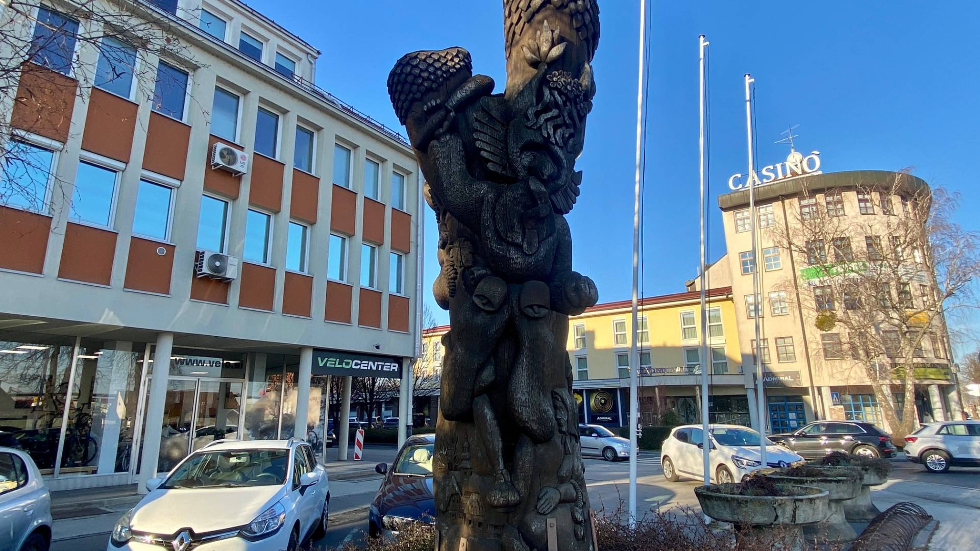 Lesena skulptura kurenta likovnega samouka Borisa Žoharja ob Osojnikovi cesti na Ptuju stoji že dobrih trideset let.