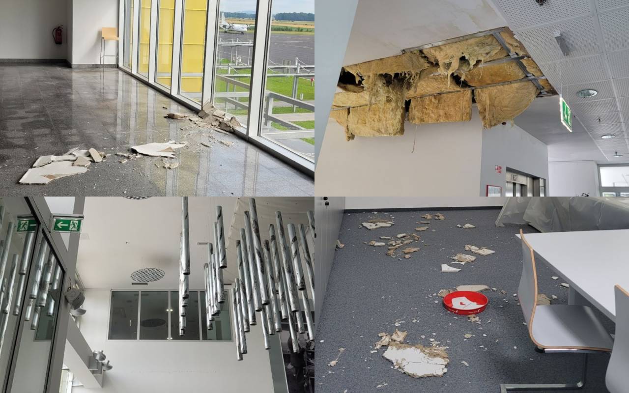 Poškodovan je letališki terminal; dokler ne bo opravljena sanacija, bo njegova uporaba omejena.