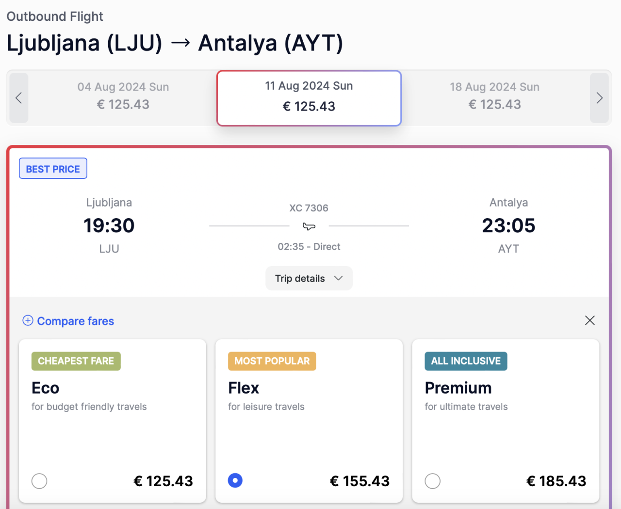 Obe liniji bosta obratovali enkrat na teden, in sicer ob petkih in nedeljah. Leti iz Herakliona bodo stekli 7. junija, zadnji pa bo 6. septembra, medtem ko bo povezava z Antalyo obratovala od 16. junija do 6. oktobra. Vozovnice so že naprodaj na spletni strani letalske družbe, mnoge pa so že razprodane.