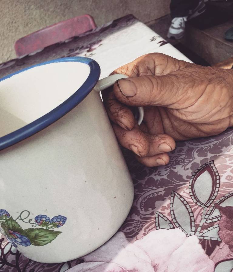 Ajmoht, dve pesti riža, ena pest svedrčkov, tri paštete, trije jogurti, konzerva rib, kozarec kislih kumaric, pol kilograma kruha za en teden, v nedeljo sladkani žganci. - tedenski meni Franca izpod Pohorja, 80 let