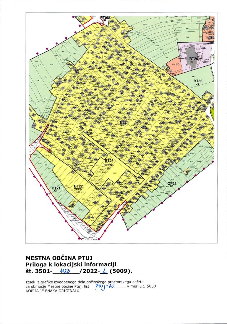 Predmetne nepremičnine se nahajajo v območju stavbnih zemljišč in so del območja četrtne skupnosti Breg -Turnišče, kjer je podrobna namenska raba za stanovanjske površine, namenjene bivanju brez ali s spremljajočimi dejavnostmi.