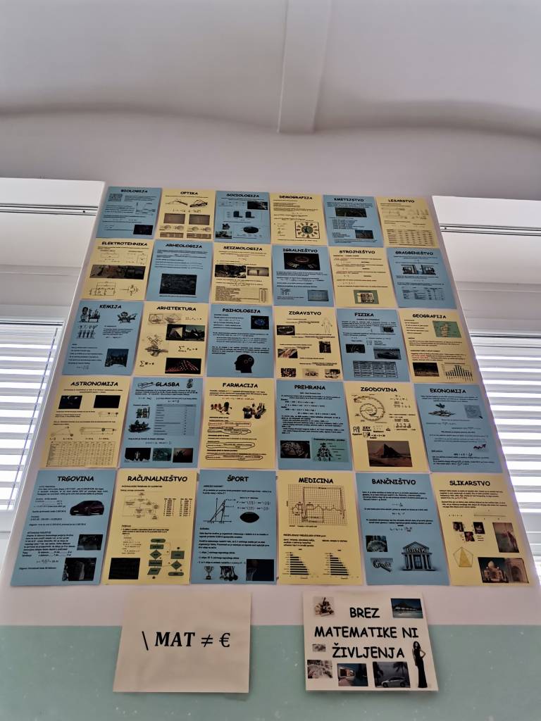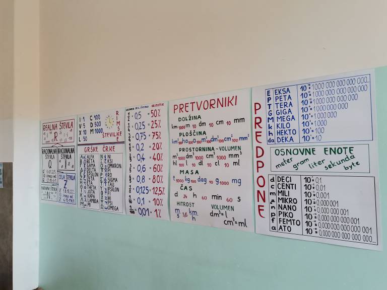 Po zidovih zares visijo matematični pripomočki, a prostor je rezerviran tudi za navdihujoče misli. Ste se kdaj vprašali, kdaj boste potrebovali vso matematično osnovnošolsko znanje? Černelovi učenci se tega ne sprašujejo. Na zidu visijo tudi razlage, kako je matematika povezana z raznimi področji, kot je umetnost, zgodovina, prehrana, pa farmacija, arheologija - kar vam pade na pamet!