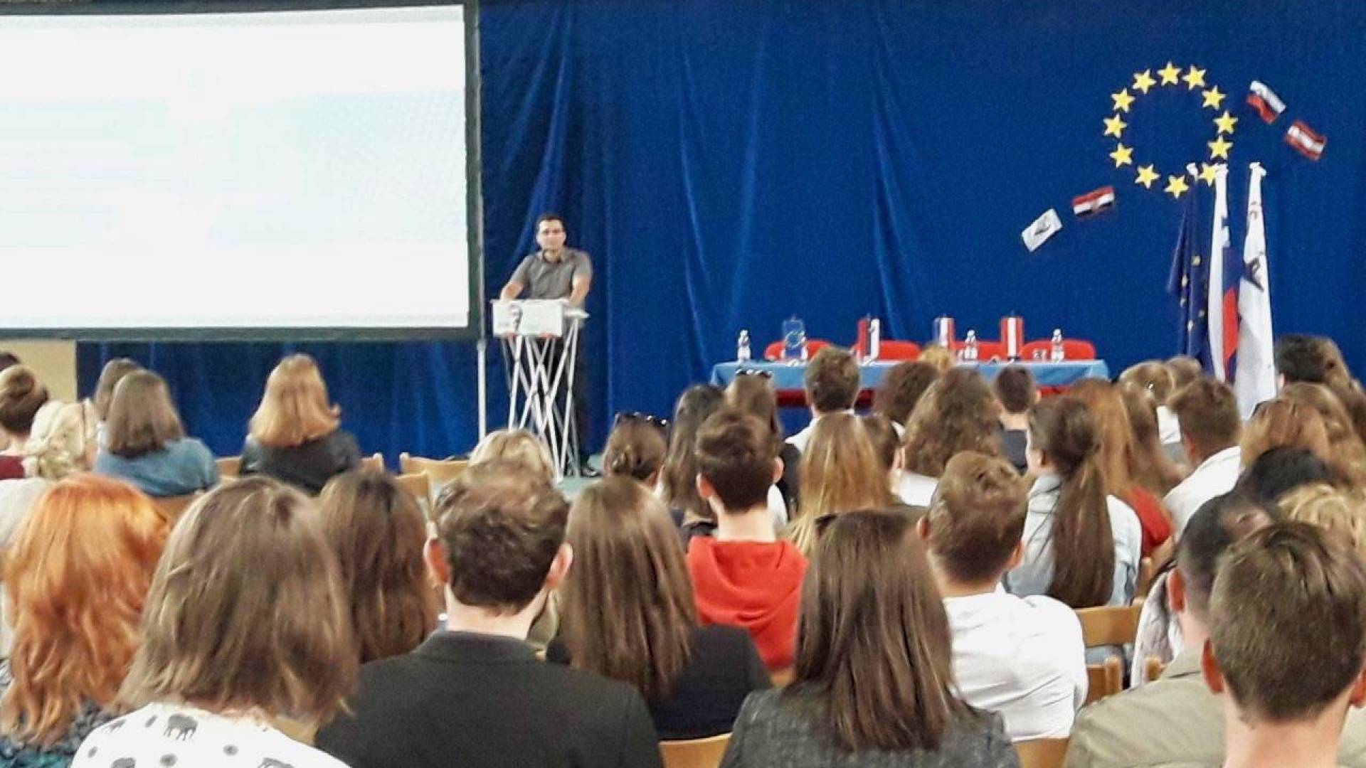 V dopoldanskih urah je sodelujoče sprejel Dejan Bogdan iz informacijske točke Europe Direct, nato pa so se lotili delavnic o EU. V treh skupinah so se posvetili pogovoru o dveh pomembnih vprašanjih – zakaj in kako EU vpliva na naša vsakdanja življenja ter kje so znotraj EU priložnosti za mlade – ter predstavili raznolika mnenja.