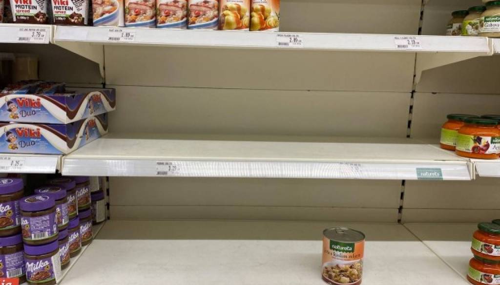 13. marca je po trgovinah zmanjkalo sadja, zelenjave, mesa, olja, kvasa, konzerv in testenin. Prav tako je zmanjkalo mleka in jajc.
