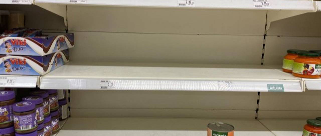 Spomnimo. Prazne police v trgovinah spominjajo na začetek marca 2020, ko so bile zaradi razglasitve epidemije trgovine dodobra izropane.