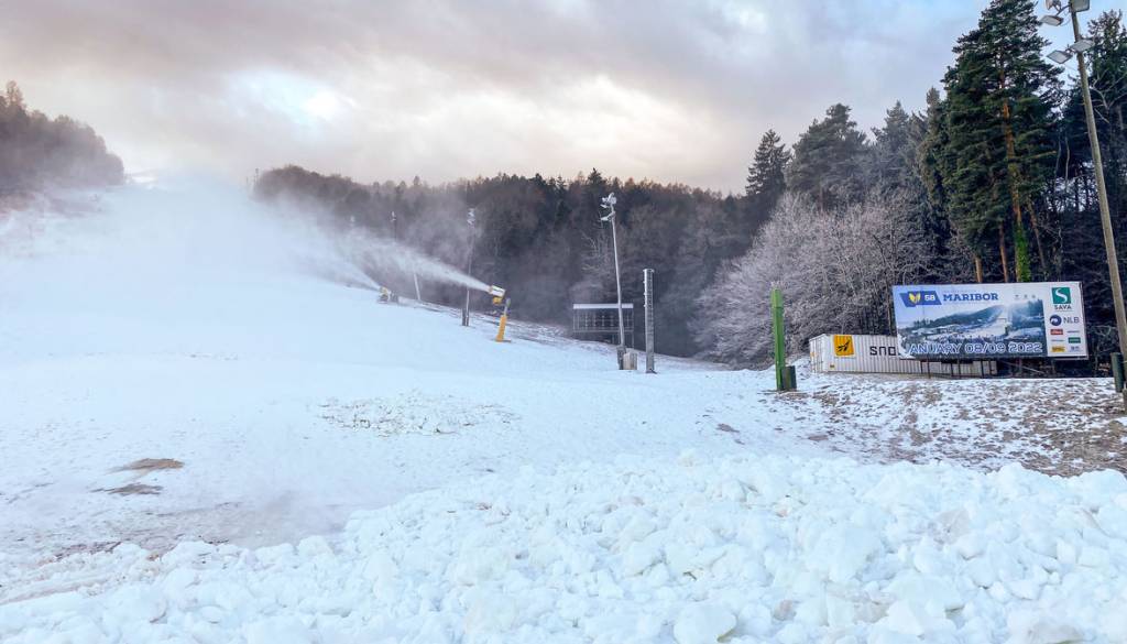 Devet dni pred snežno kontrolo se je Maribor končno prebudil ob streljanju snežnih topov. Potem ko so bile to zimo vse vremenske napovedi na spodnji poseki proge za 58. Zlato lisico napačne, so imele vsaj v odločilnem trenutku prav, opolnoči se je dovolj ohladilo, da se je 60 avtomatskih snežnih topov ob progi vključilo in začelo bruhati sneg.