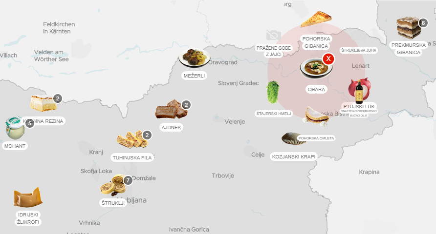 Na karti pa so na področje Štajerske uvrstili tudi slovensko obaro, ki se lahko pripravi s kombinacijo različnih vrst mesa, klavničnih izdelkov in zelenjave (čebula, korenje, zelena, grah, fižol in repa).