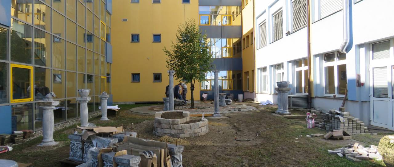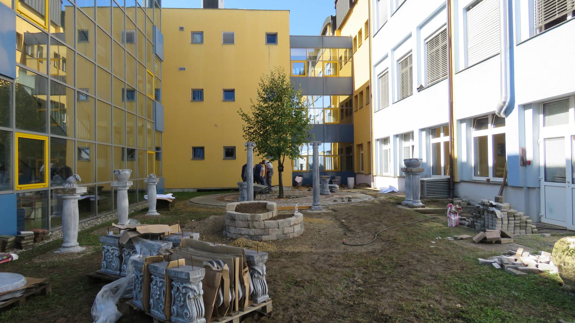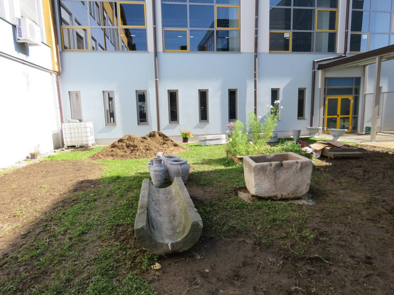 V zaprtem atriju šole pravkar urejajo rimski botanični vrt, ki se bo ponašal s čisto pravimi rimskimi ostalinami. Prostor bo namenjen druženju, služil bo tudi kot učilnica na prostem.
