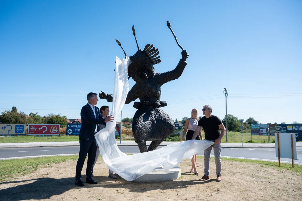 Odkritje skulpture Kurenta ob 120-letnici Perutnine Ptuj.