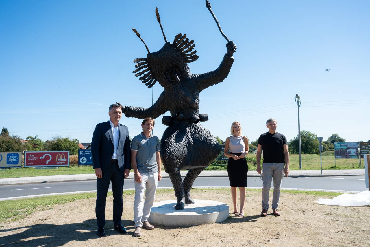 Skulptura stoji v krožišču pri Puhovem mostu, kjer je glavna vstopna točka v mesto.