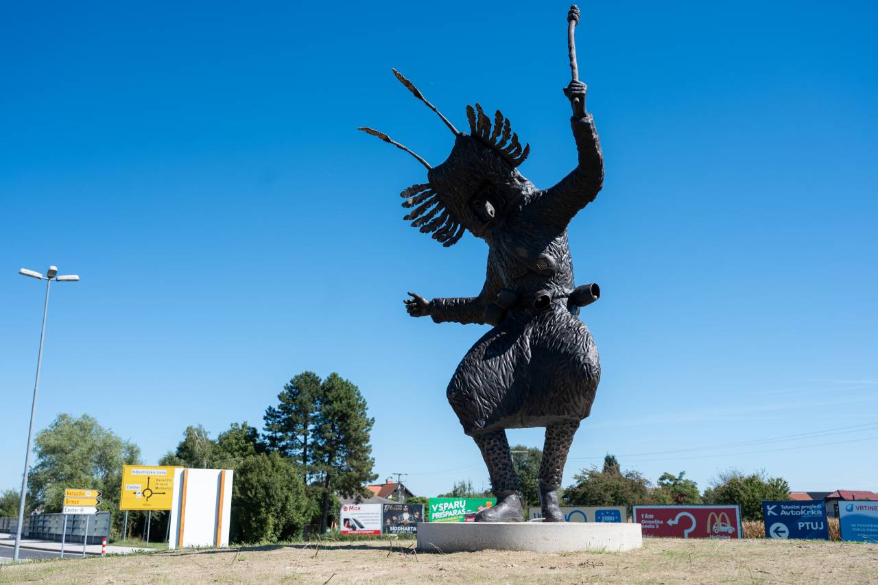 Gre za monumentalno skulpturo Kurenta, visoko skoraj pet metrov. To je največja etnografska skulptura v regiji, ki sta jo ustvarila lokalna umetnika Tomaž Plavec in Dušan Fišer.