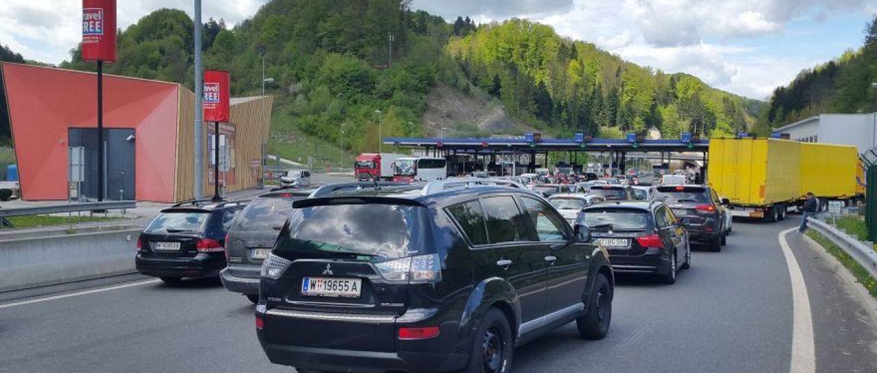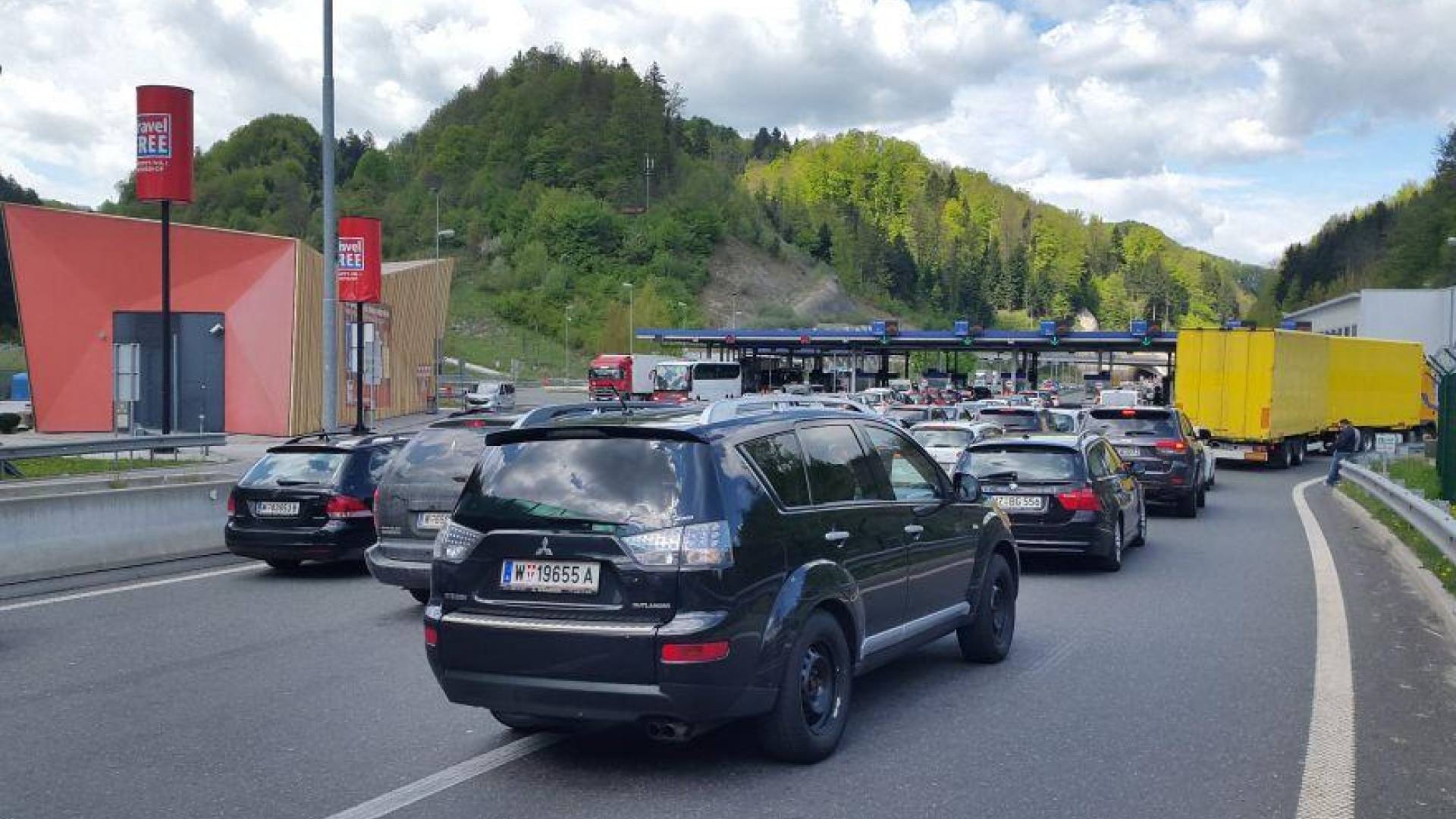 Zastoj je tudi pred predorom Karavanke proti Slovenji, kolona vozil je trenutno dolga en kilometer.