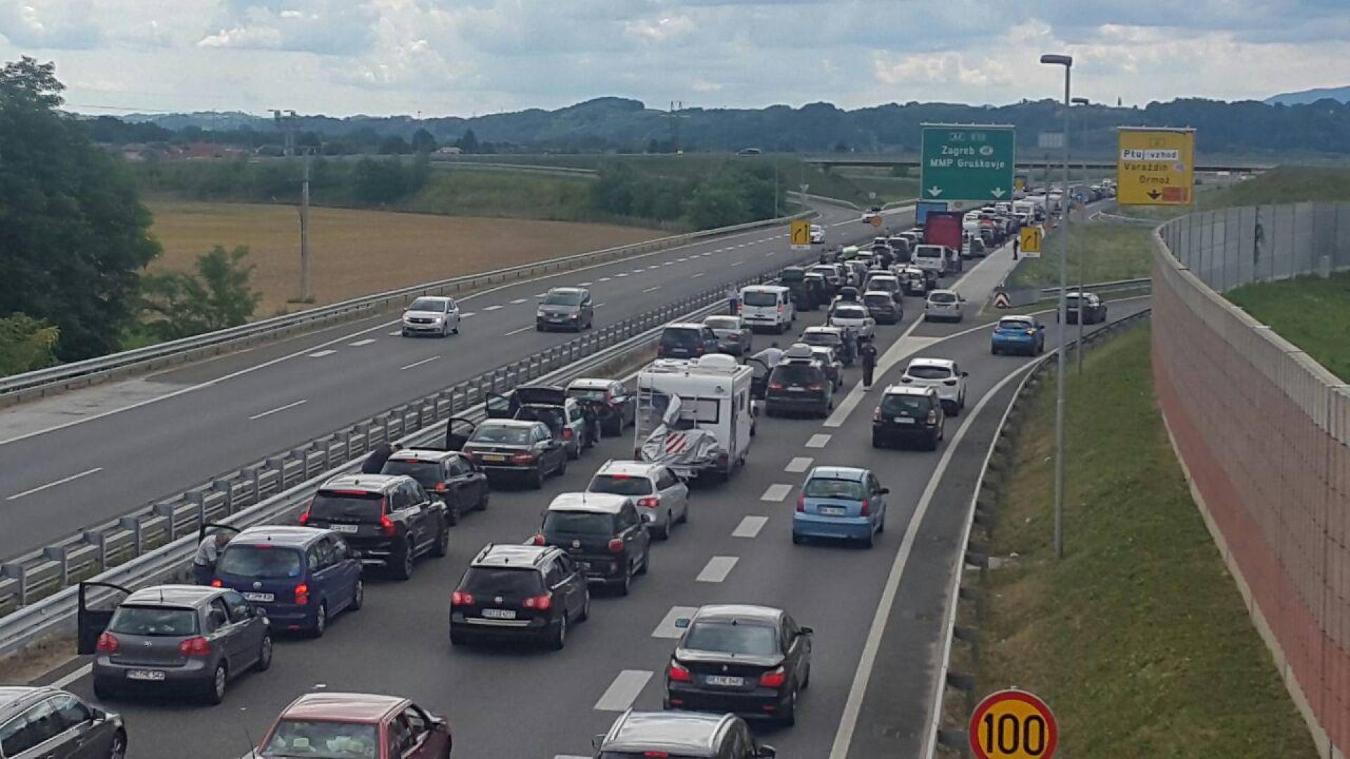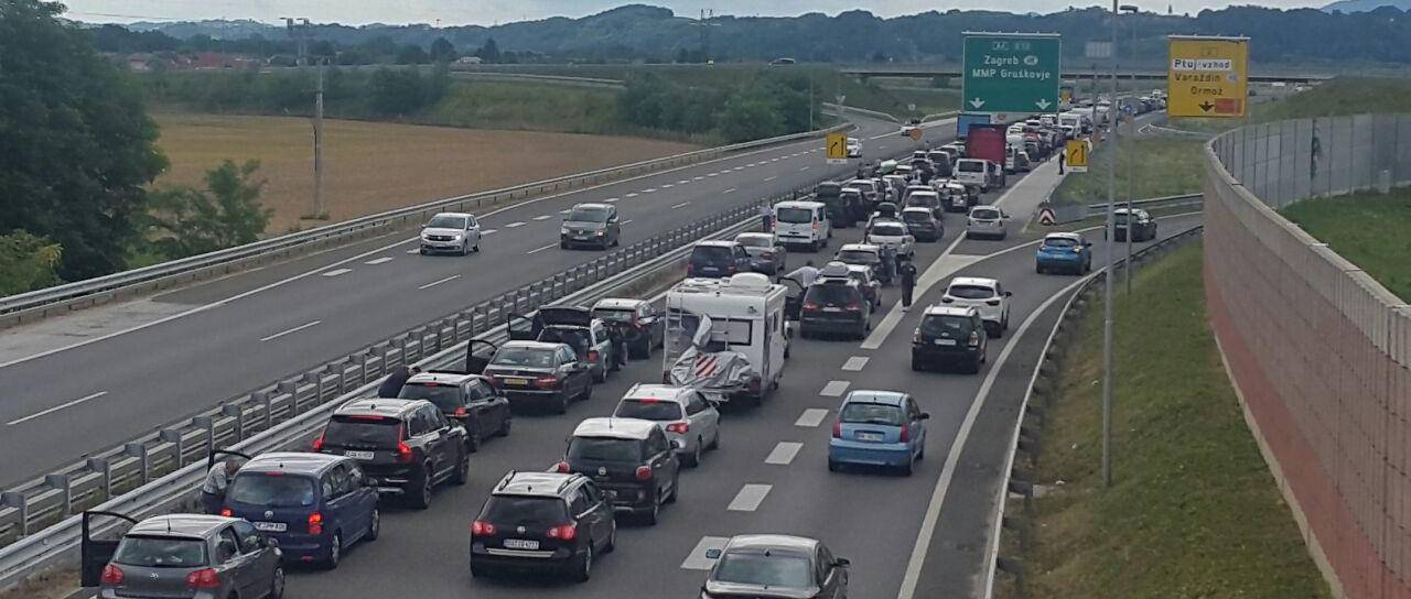 Na podravski avtocesti se med počivališčem Dravsko polje in razcepom Draženci v smeri Hrvaške vije šest kilometrov dolg zastoj, gneča vse do mejnega prehoda.
