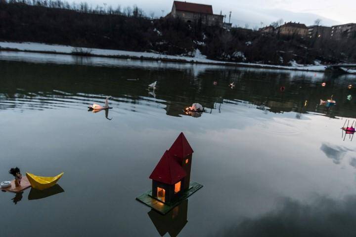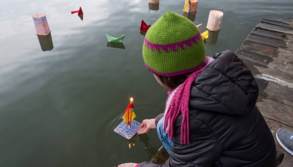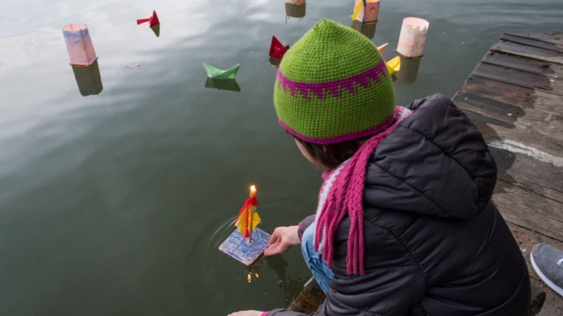Danes so se zbrali otroci in starejši obiskovalci, ki so uživali ob pogledu na plavajoče gregorčke.