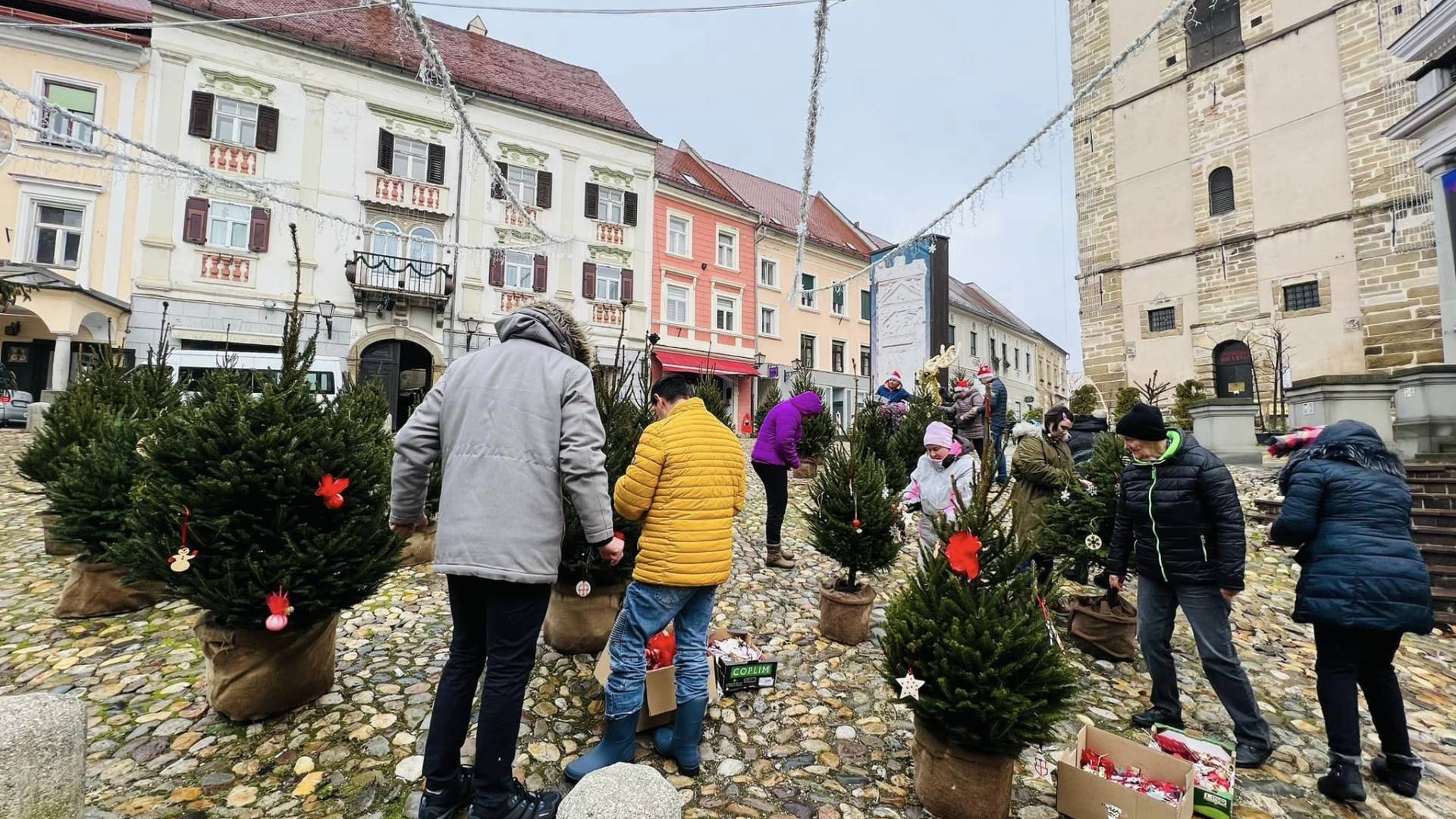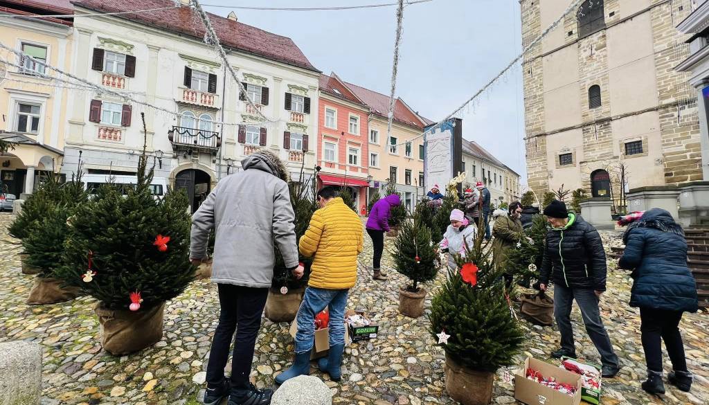 Kar 40 manjših smrečic, ki krasijo Slovenski trg, so z unikatnimi okraski izdelali uporabniki Centra Sonček Ptuj in VDC Sožitje Ptuj