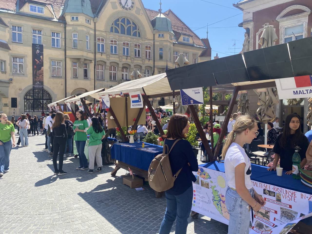 Pred mestno hišo so otroci in učenci v sklopu programa, pripravli stojnice na temo ekologije in naravnih virov držav Evropske unije. Na podlagi države, ki so jo posamezne šole izžrebale, so pripravili plakate, izdelke, značilno kulinariko in mnoge druge zanimivosti.
