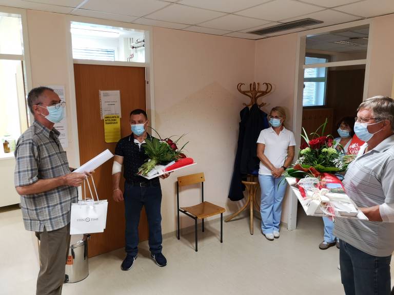 Na Enoti za transfuzijsko dejavnost Ptuj Centra za transfuzijsko medicino Univerzitetnega kliničnega centra Maribor so 4. avgusta gostili kar dva krvodajalca stokratnika.
