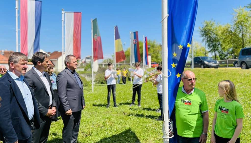 Slovesnost so zaključili z dvigom evropske zastave v ptujskem »Evro parku«.