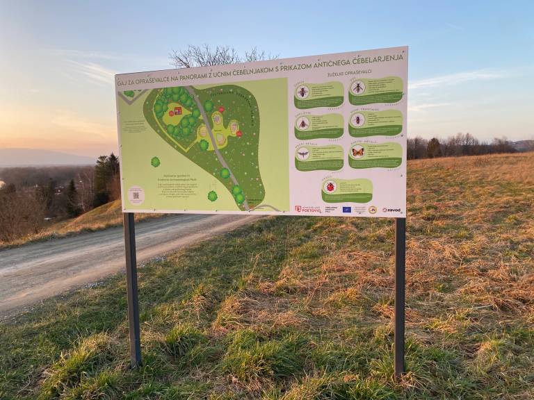 Mestna občina Ptuj je na Panorami v okviru participativnega proračuna postavila učni čebelnjak z grafičnim prikazom čebelarjenja v antiki in poleg dveh že obstoječih gred z medonosnimi rastlinami bosta spomladi zasajeni še dve.