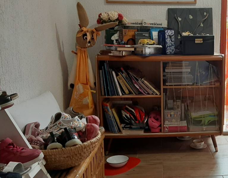 V trgovini je tudi manjša knjižnica, kjer si lahko obiskovalci izposodijo knjige, ali pa jih preprosto zamenjajo. »Ko je vreme primerno pred trgovino na travo vržemo koce, tam se lahko igrajo tako naši mali obiskovalci, kot tudi otroci iz soseske,« pravi Sabina.