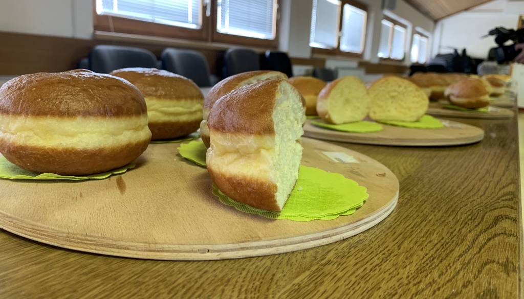 »Najprej pogledamo zunanji izgled, zapečenost krofa, potem je seveda notranjost. Krof prerežemo in pogledamo, če je dovolj spečen, če je luknjičavost pravilna, če je konsistenca pravilna in na koncu tudi okus,« je pojasnila Horvatova.