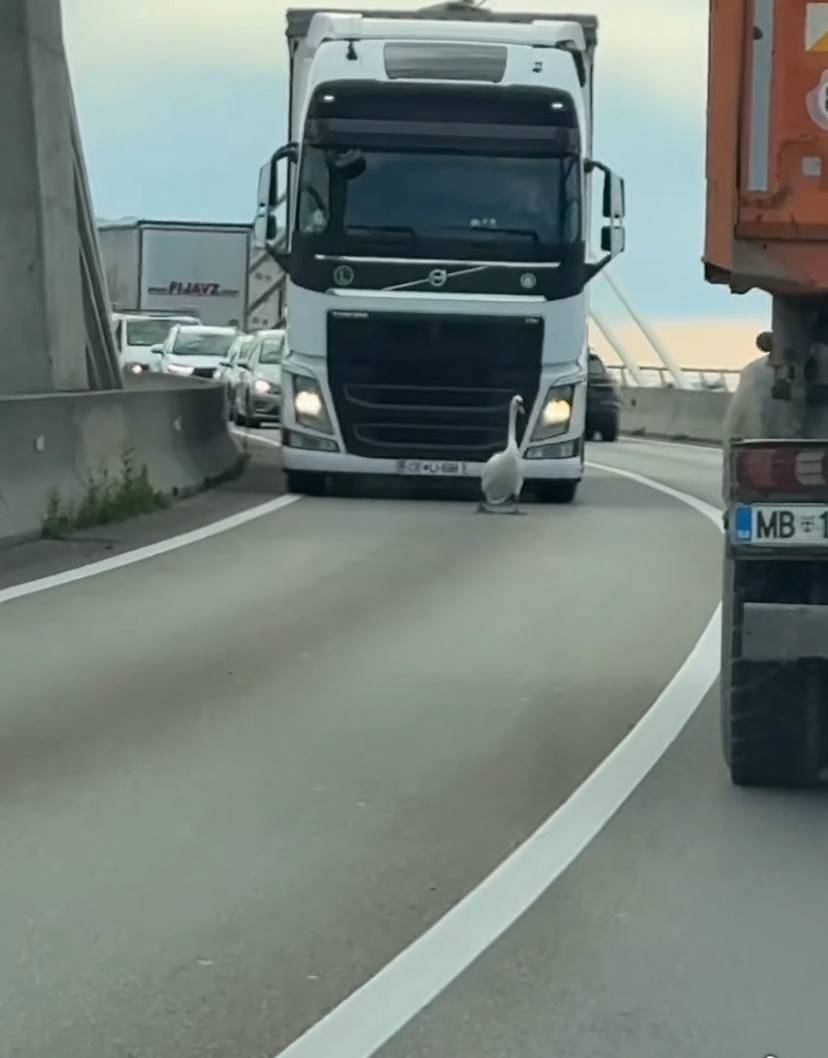 Vozniki so se ustavili in potrpežljivo počakali, da se je labod počasi, a odločno, sprehodil z ene strani mostu na drugo.