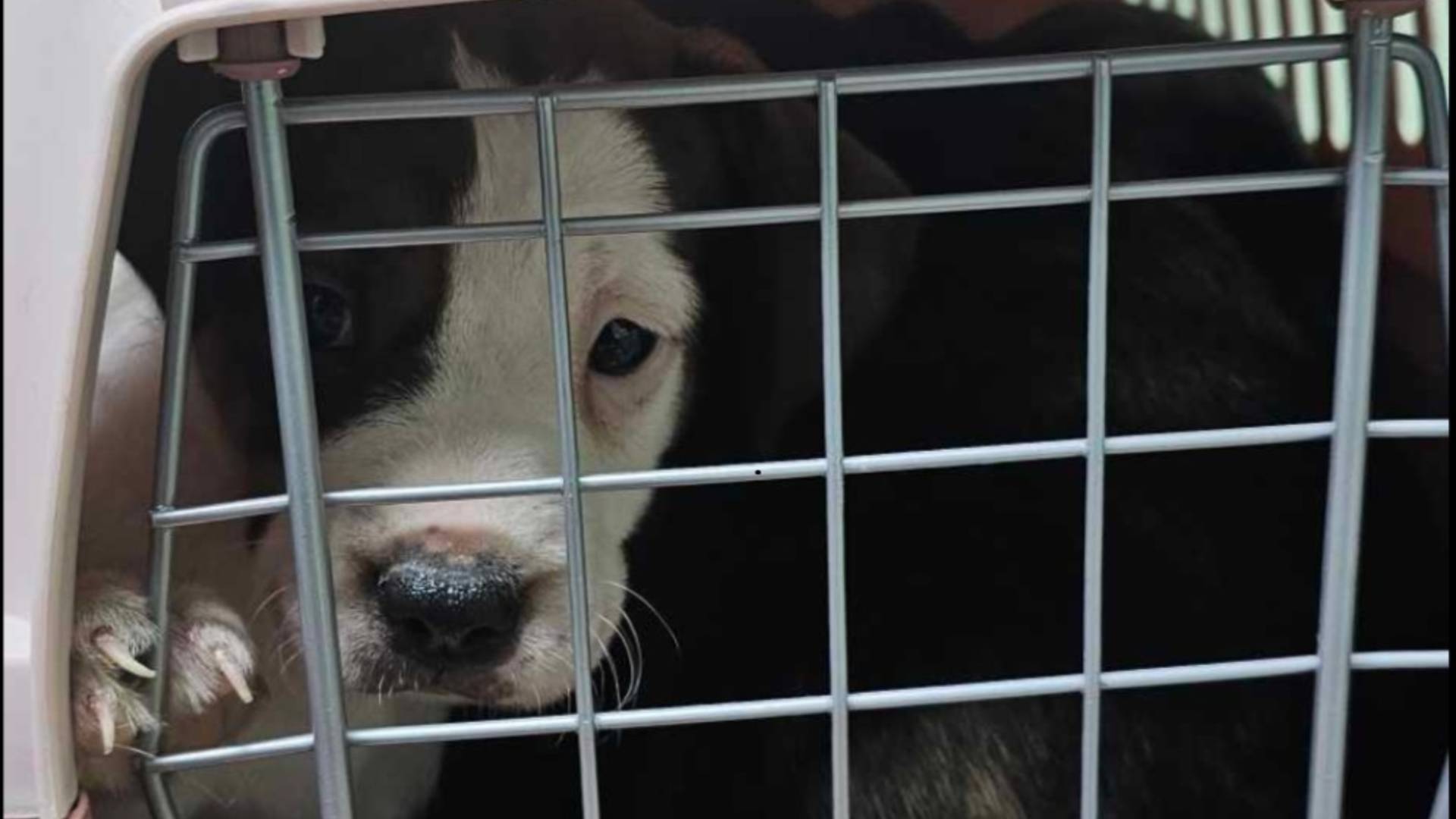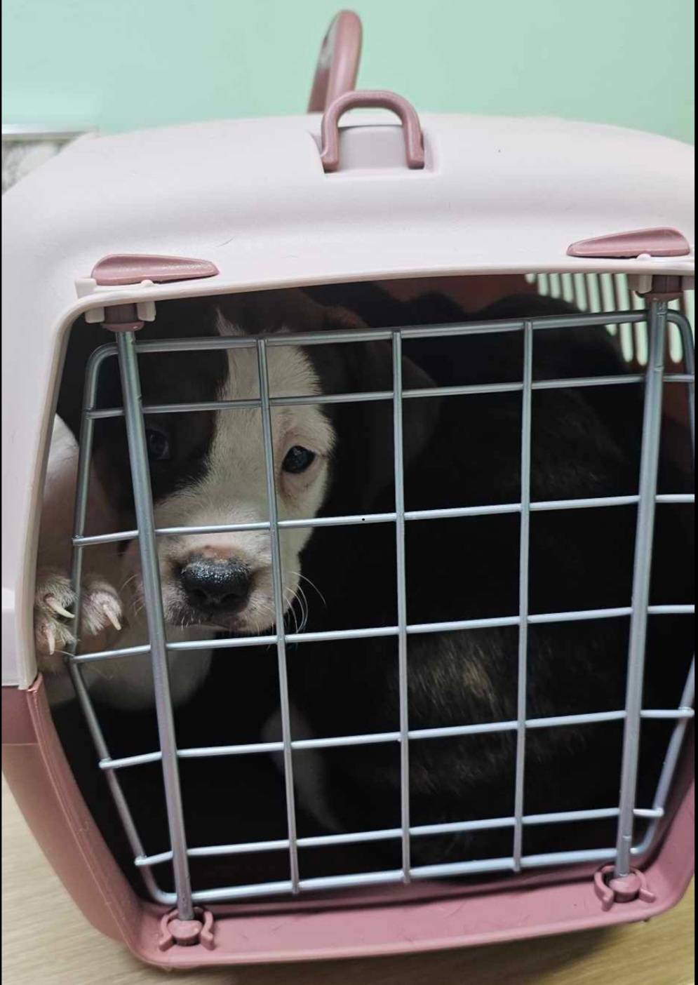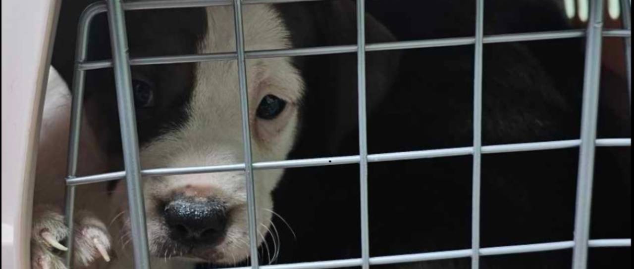 Skupina treh majhnih psičkov je bila prepuščena in stlačena v majhnem transportnem boksu, v katerem se niso mogli niti obrniti.