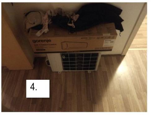 Nova in še zapakirana klimatska naprava Gorenje bo na javni dražbi na Vičavi 13. maja 2025. Ocenjena vrednost in izklicna cena je 300 evrov.