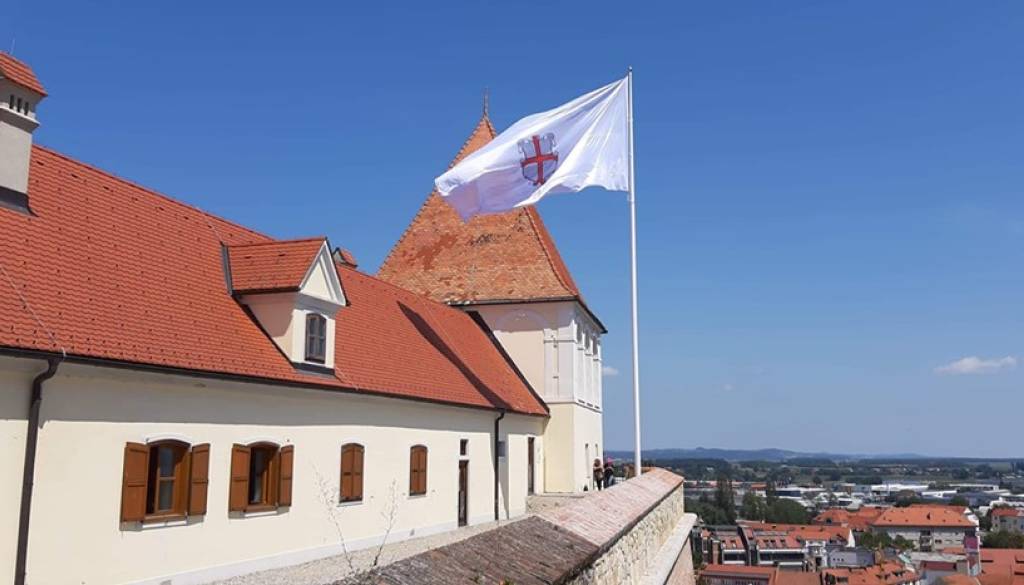 Danes točno opoldne je po več letih prizadevanj na spodnjem dvorišču Ptujskega gradu vendarle zaplapolala ptujska zastava.