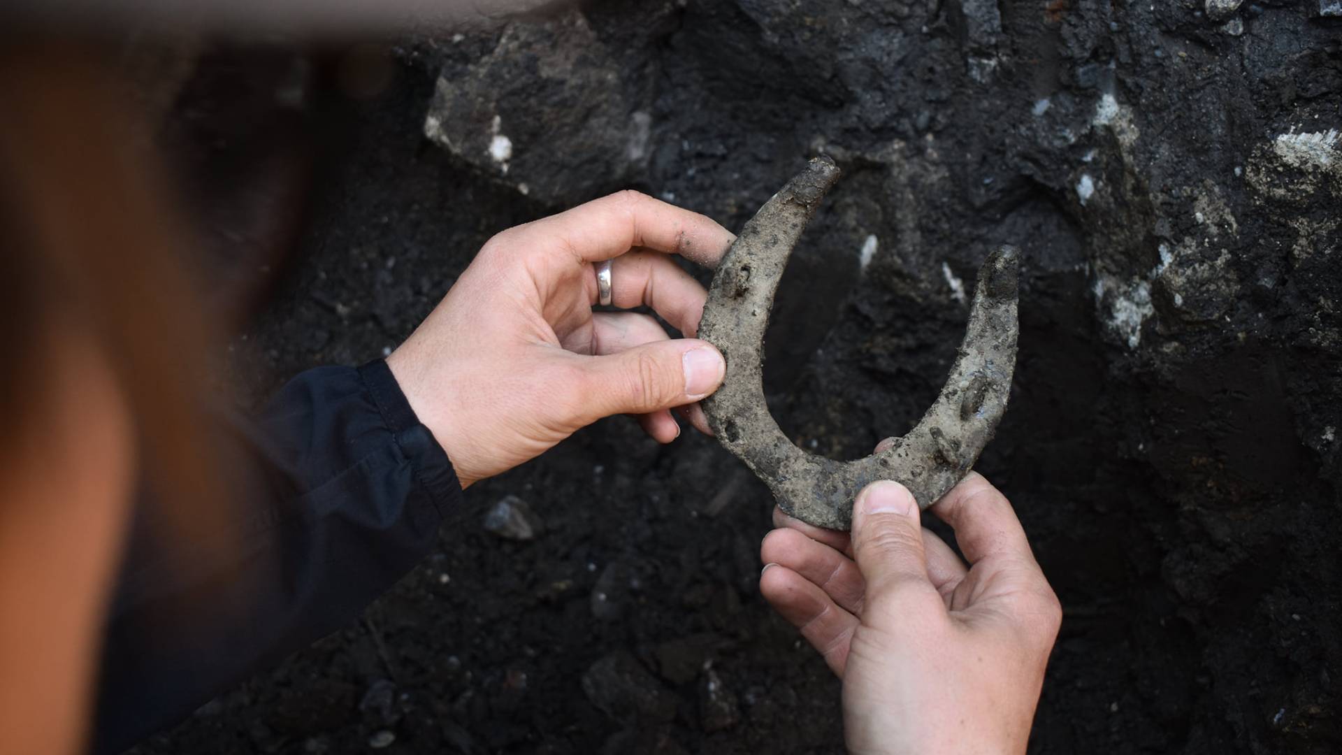 Podkev so odkrili v sondi na Vrazovem trgu, med kamni za utrditev srednjeveške ceste. V tem primeru gre za podkev, ki je nekdaj najverjetneje ščitila kopito konja.