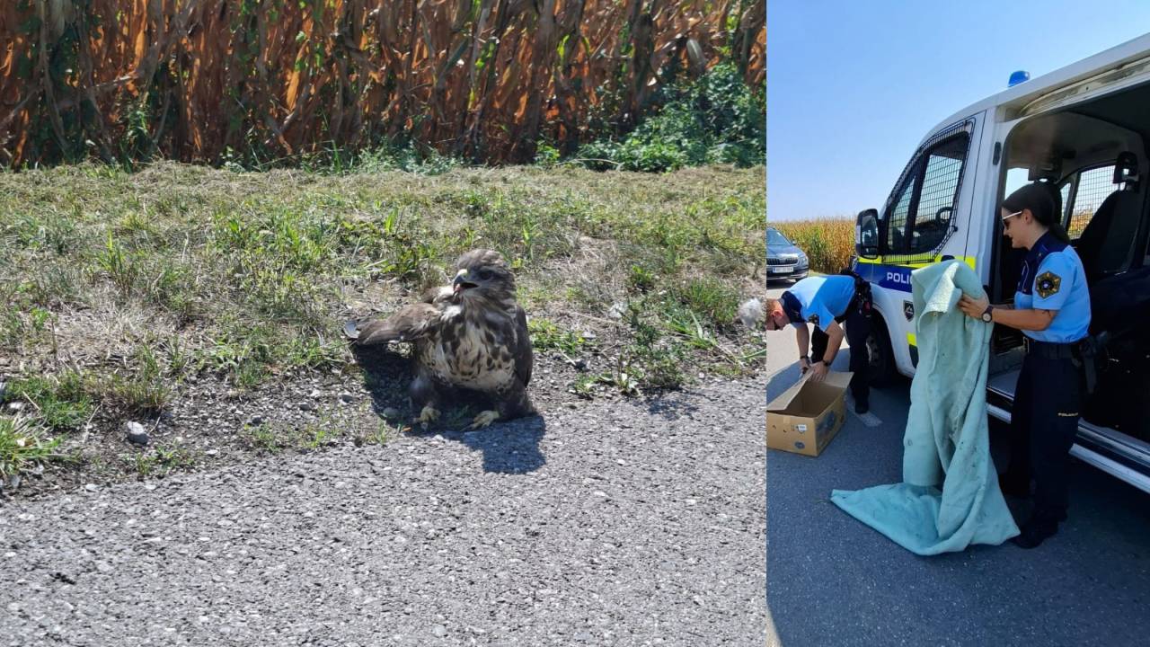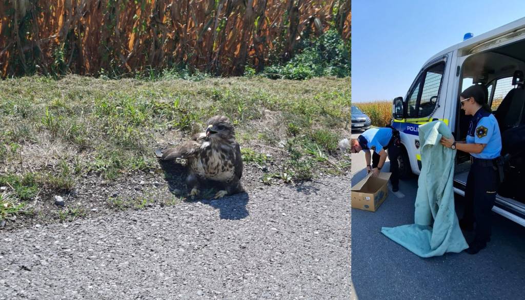 Policista Leja in Marko je v okolici Moškanjcev ustavil občan, ki je naletel na poškodovano kanjo.