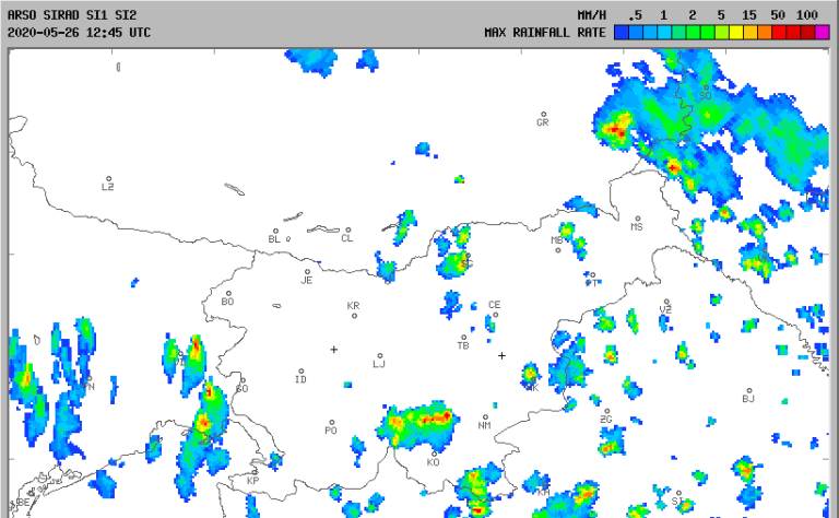 S severovzhoda se nad naše kraje pomika nevihtna celica. Po napovedih vremenoslovcev bodo popoldne nastajale krajevne plohe in posamezne nevihte.
