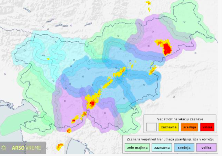 Čez dan se bodo padavine in nevihte od zahoda postopno širile proti vzhodu. Možna bodo krajevna neurja.
