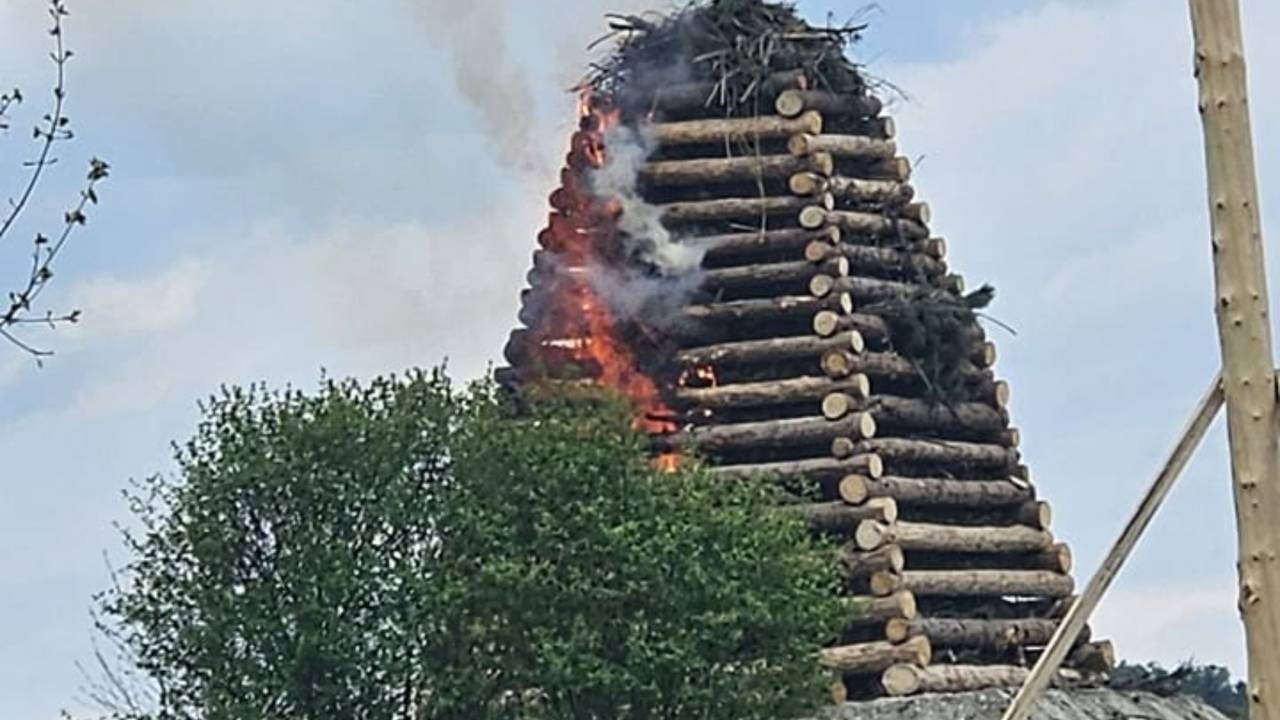 Pripravljeni kres, ki čaka na nedeljo, so požgali že danes.