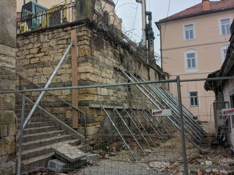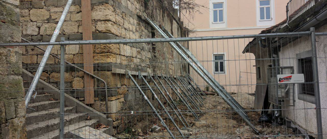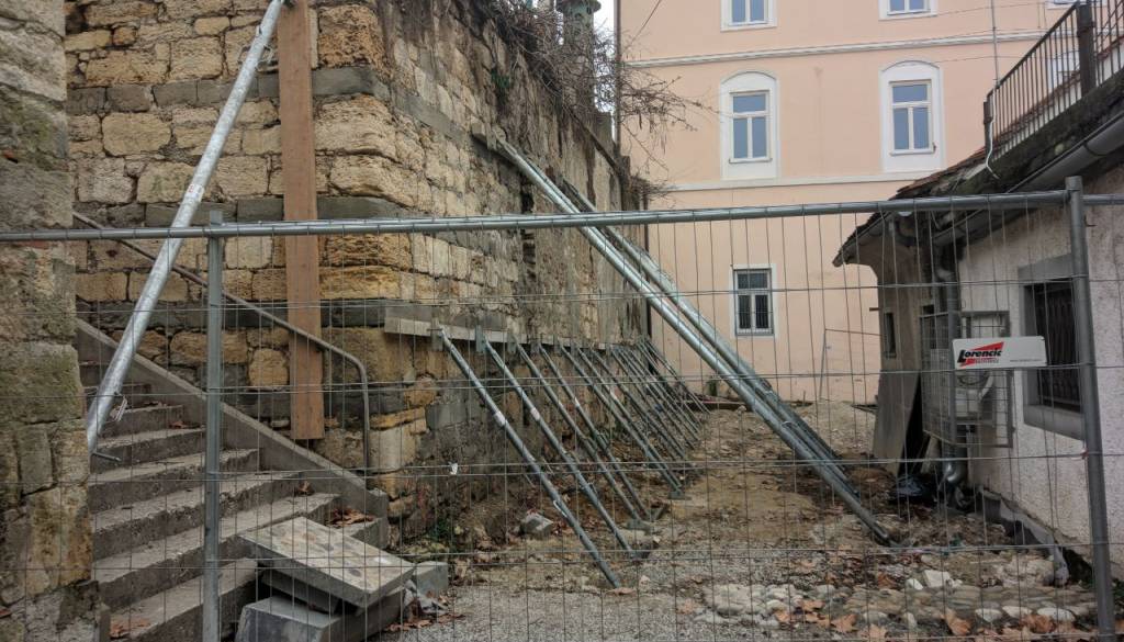 Kot smo že poročali, so med tlakovanjem na območju južno od cerkve Svetega Jurija, ki povezuje Slomškovo ulico in Mestni trg, opazili, da je oporni zid v zelo slabem stanju.