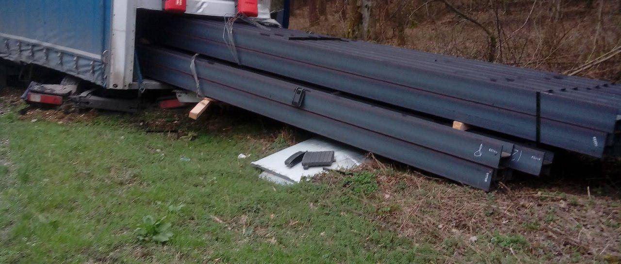 NEVARNO: Tako je iz tovornjaka priletelo 22 ton neprimerno pritrjenega tovora