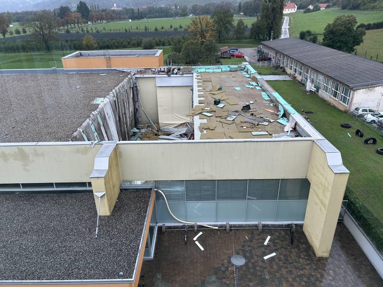 Do zrušenja strehe je prišlo na strehi Športne dvorane Vrbanska, ki jo upravlja Zavoda Antona Martina Slomška Maribor.