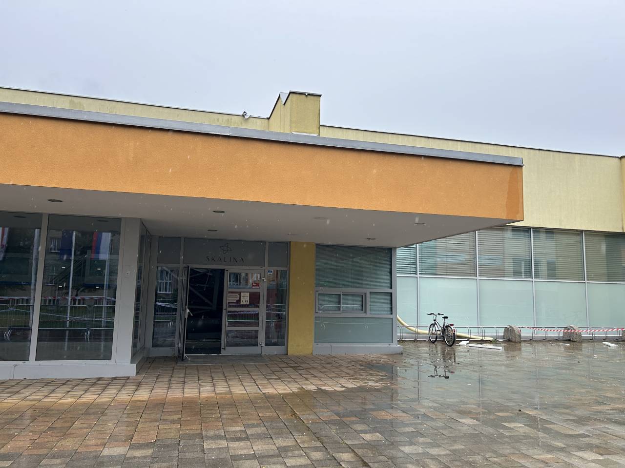 Skozi odprtino zdaj dežuje neposredno na parket in drugo opremo ter s tem nastaja dodatna škoda, ki bi lahko presegla milijon evrov.«